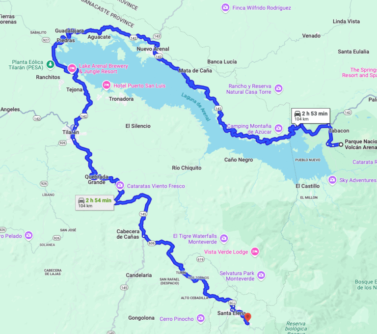 Hommikul sõidame ümber Arenali järve Santa Elena linnakesse, sõiduaeg peaks jääma alla 3 tunni.